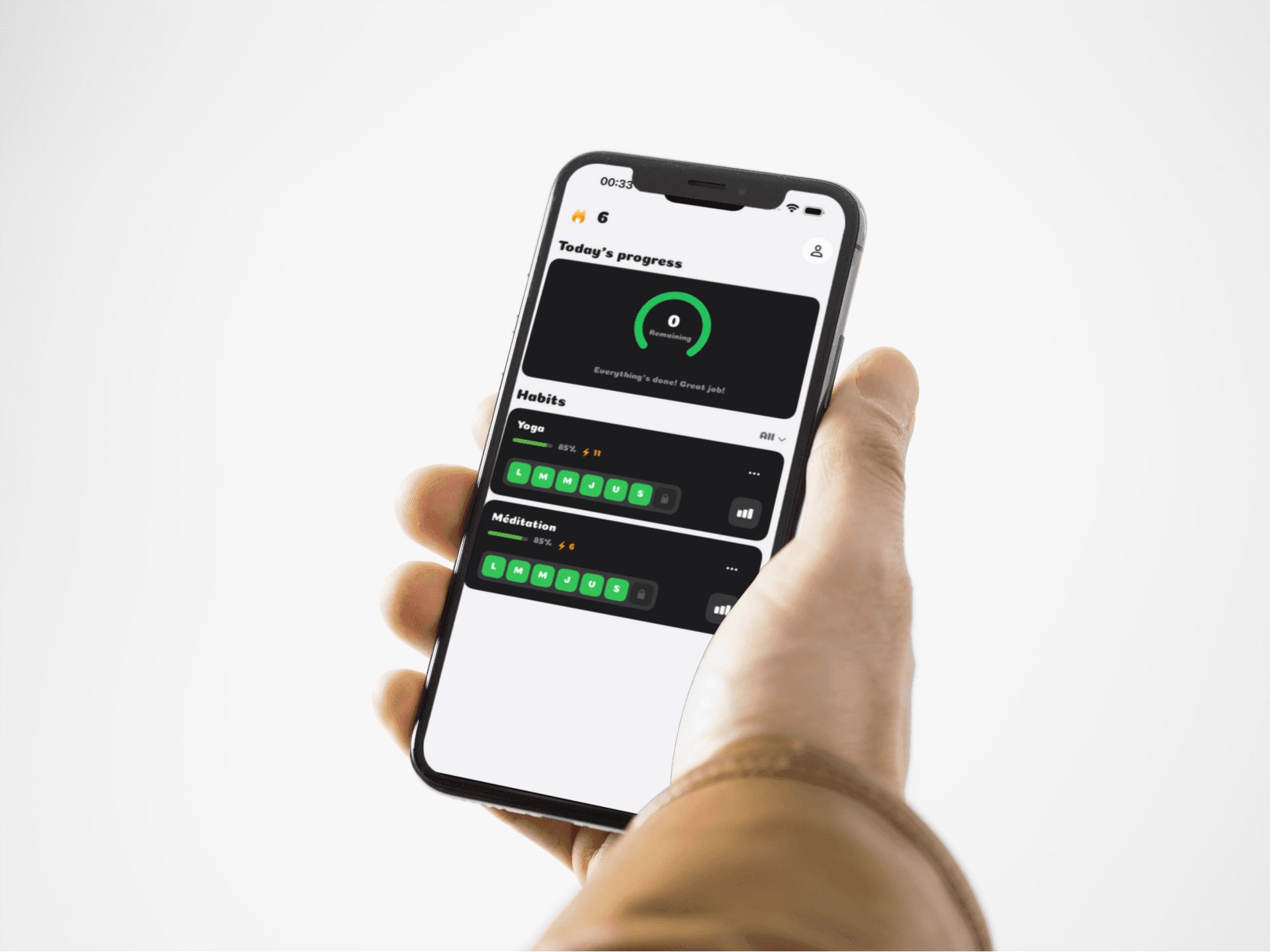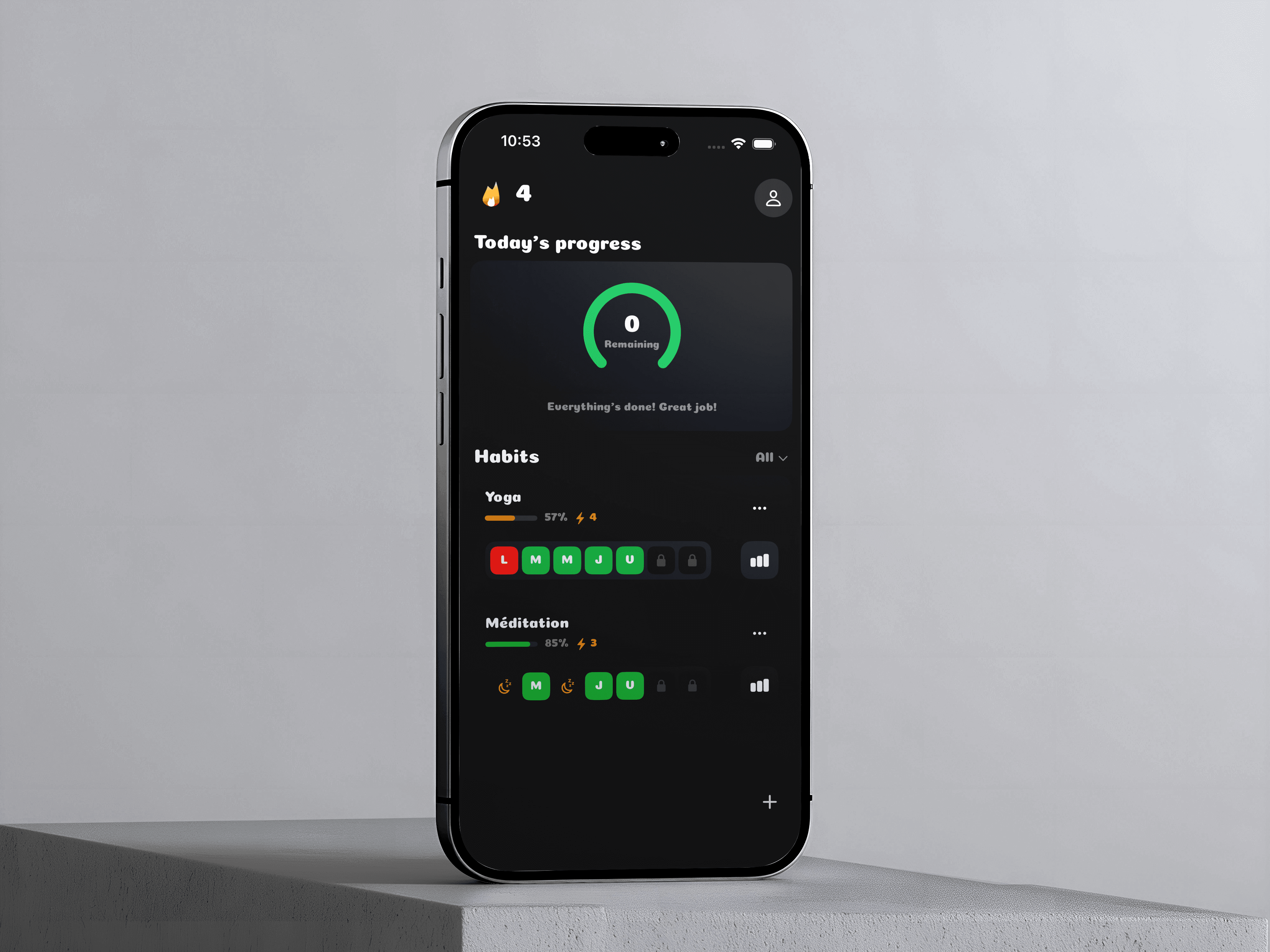 • Smart streak calculation that respects rest days.