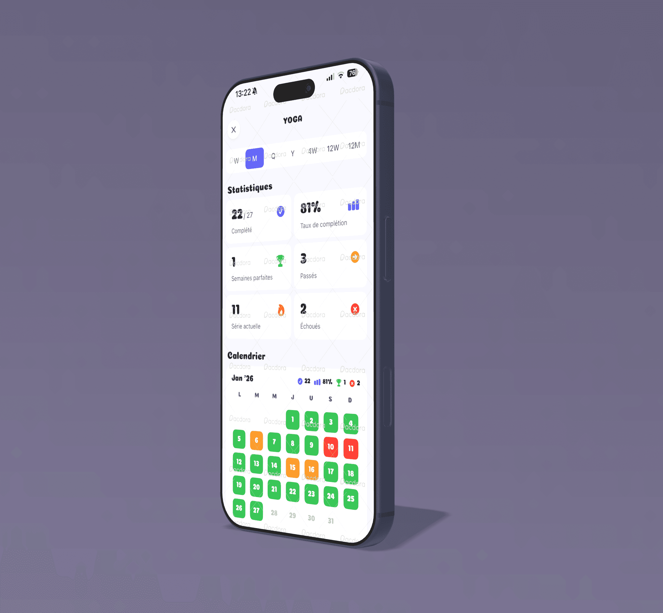 • Detailed Statistics — View your progress across 7 time periods (week, month, quarter, year...).